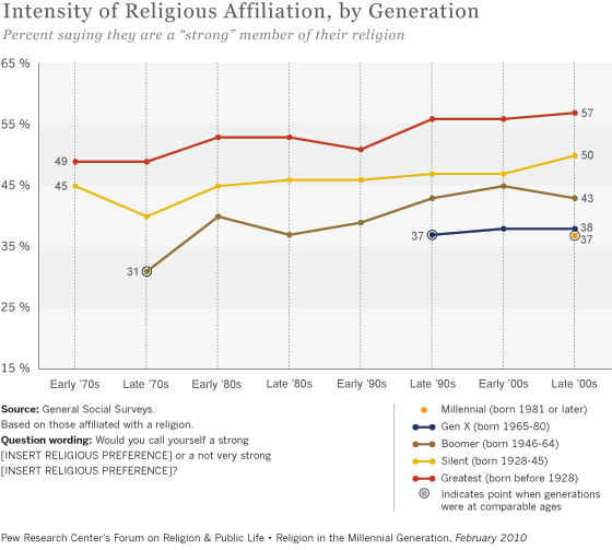 And yes, I know that chart doesn't mention Gen Z by name. It does lump them in with Gen Y and the Millennials. But as we've seen, religiosity among those cohorts is pretty much the same at present. Given that piety among all generations trends upward over time, and factoring in the severe hardships that are almost certainly around the corner, we can expect Zoomers to surpass the Boomers as they navigate the Clown World hellscape.